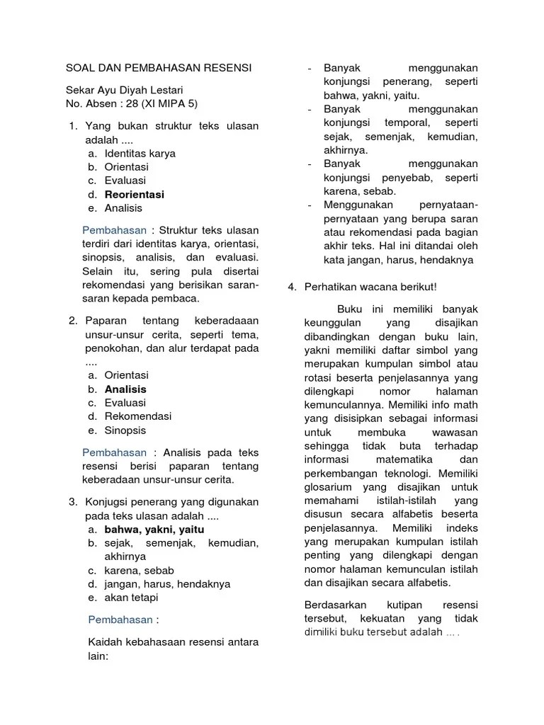 Okay so here i think i have finally sunk to the bottom of the barrel to try . 17 soal (essay) resensi beserta jawaban. Soal bahasa indonesia tentang resensi novel beserta kunci jawabannya 1. Undead, unwed, and i also wish i could say unread! Artikel contoh soal bahasa indonesia kelas 4 pg dan essay untuk tingakat .